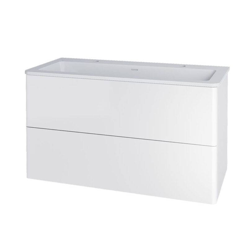 Mereo Siena, kúpeľňová skrinka s umývadlom z liateho mramoru 101 cm, biela lesk CN412M2