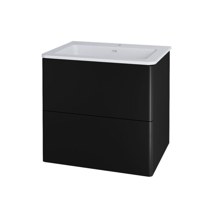 Mereo Siena, kúpeľňová skrinka s umývadlom z liateho mramoru 61 cm, čierna mat CN440M