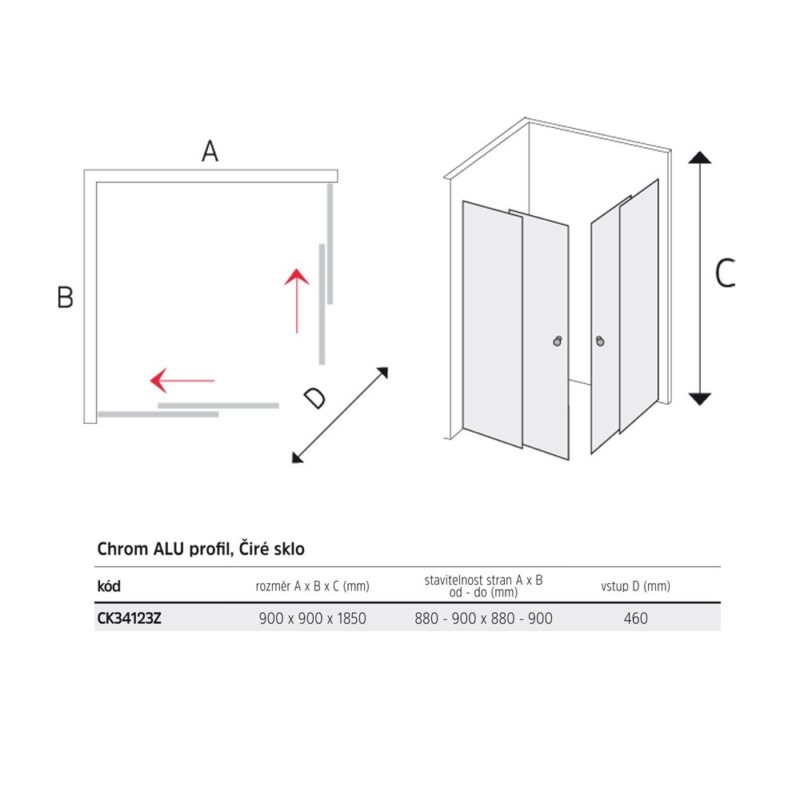 Mereo Sprchovací kút, Kora Lite, štvorec, zasúvací, 90×90 cm, chróm ALU, sklo Číre CK34123Z