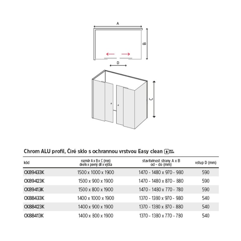 Lima je rad sprchových kútov Mereo, ktorá navodí pocit čistého dizajnu v každej modernej kúpeľni. Rovné hladké plochy, čisté línie a pravouhlé profily umocňujú pocit exkluzivity. Kvalitné sklenené výplne s bezpečnostným sklom. Tento kút ponúkame v prevedení s čírym sklom.Ľahké uzatváranie a tesnosť zaisťujú silikónové lišty a tesnenia. Tesnenia na vstupnej časti sú opatrené magnetom. Nejedná sa však o hermeticky uzavretý výrobok.Ľahké otváranie a nastavenie zabezpečujú ložiskové pojazdy (dvojité koliesko). Jednoduchú údržbu a možnosť vyčistiť aj tie najmenej prístupné miesta kútu potom zaisťujú spodné pojazdy s pružinovým mechanizmom, pre jednoduché vycvaknutie posuvnej časti z rámu.Za zmienku iste stojí inovatívny systém montáže pomocou CLICK systému. Tento systém montáže znižuje počet operácii a čas, potrebný pre zostavenie celého kútu. Odbúrava niektoré zložitejšie montážne operácie. Kút je vďaka tomu dodávaný s ohľadom na maximálnu jednoduchosť a rýchlosť montáže. A to aj svojpomocne. Výrobky v čírom prevedení skla sú vybavené povrchom EASY CLEAN. Jedná sa o ochrannú vrstvu, vďaka ktorej na skle nedochádza k usadzovaniu nečistôt a umožńuje jednoduchú údržbu. Vrstva je odolná voči čistiacim prípravkom bežne používaným na okná a sklenené výplne.V cene kútu nie je zahrnutá cena vaničky. Ean: 8596462566977