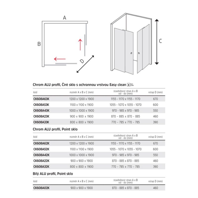 Pridajte prvú recenziu pre “Mereo Sprchovací kút, Lima, štvorec, zasúvací, 100×100 cm, chróm ALU, sklo Číre CK608A43K”