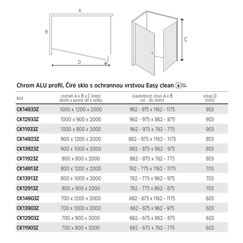 Mereo Sprchovací kút, Novea, obdĺžnik, pivotový, 80×100 cm, chróm ALU, sklo Číre, dvere L/P a pevný diel CK13913Z