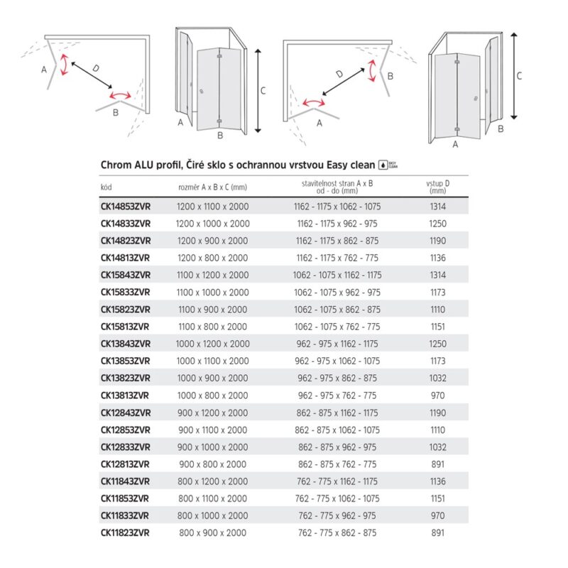 Mereo Sprchovací kút, Novea, obdĺžnik, zalamovací, 80×110 cm, chróm ALU, sklo Číre CK11853ZVR