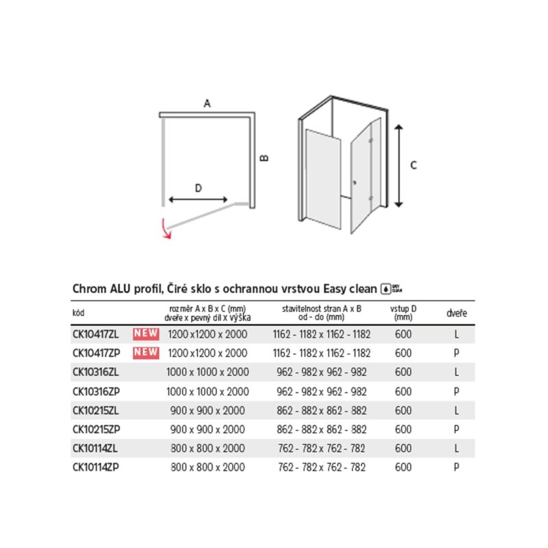 Mereo Sprchovací kút, Novea, štvorec, pántový, 120×120 cm, chróm ALU, sklo Číre, dvere pravé a pevný diel CK10417ZP