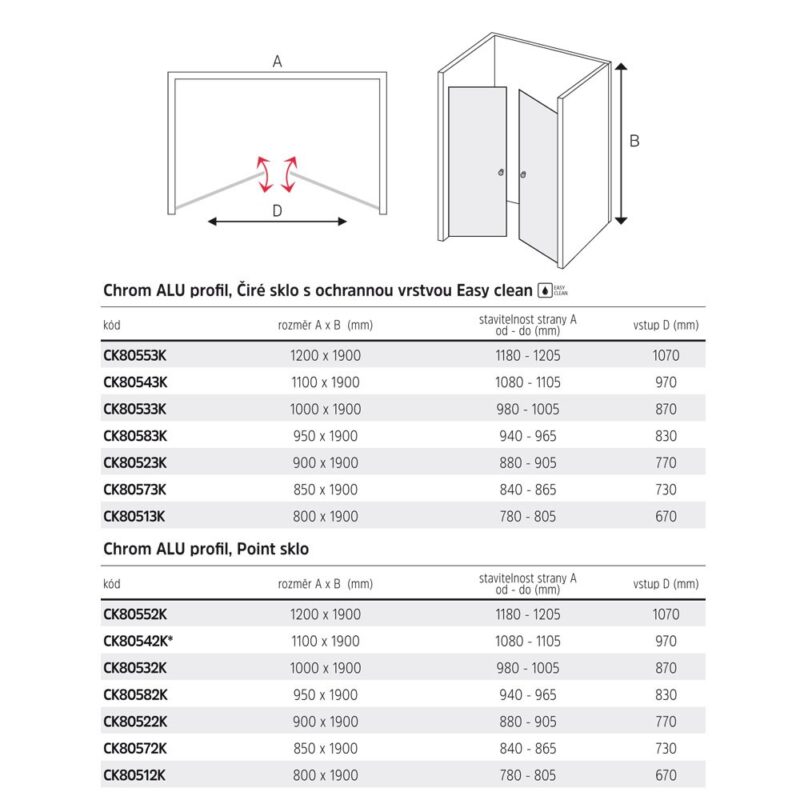 Mereo Sprchové dvere, Lima, dvojkrídlové, lietacie, 90×190 cm, chróm ALU, sklo Číre CK80523K