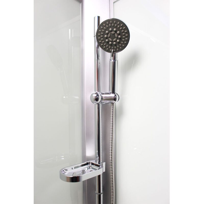Sprchový box vnáša do ekonomickej triedy nový rozmer kvality. Sklo je v dizajne Point, satin ALU profil. Hrúbka bezpečnostného skla je 5/4 mm. Sklo je dokonale utesnené silikónovými lištami.Nejedná sa však o hermeticky uzavretý výrobok. Sprchový kút je osadený posuvnými dverami, ktoré majú kvalitné dvojkolieskové horné pojazdy s možnosťou perfektného nastavenia. Dorazy zaisťujú minimálne nárazy pri otváraní a zatváraní sprchovacieho kútu.Spodné pojazdy umožňujú odklopenie posuvnej časti sprchovacieho kútu a vyčistenie bežne nedostupných miest. Tesnosť medzi pevnou a posuvnou časťou je zaistená silikónovými lištami. Na pripojenie boxu je možné použiť nerezové opletové hadičky, ktoré nájdete v našej ponuke (súčasťou balenia sú nerezové pripojovacie hadice 1/2 „s dĺžkou 60 cm).Sprchové vaničky z liateho mramoru sú opatrené ochrannou vrstvou Gelcoat, ktorá zaisťuje stálofarebnosť, odolnosť proti nárazu zároveň predstavujú nadčasové a elegantné riešenie:nostnosť vaničke je 150 kg.- ľahká údržba- vysoká odolnosť- nadčasový materiál- otvor pre sifón ø 90 mm- Nosnosť vaničky je 150 kg.Vybavenie boxu:- vstavaná batéria- ručná sprcha s posuvným držiakom- vanička liaty mramor vč. nožičiek a panelu, výška 13 cm- sifón- zadná stena – sklo – *hlavová sprcha (variant so strieškou) Ean: 8596462625681