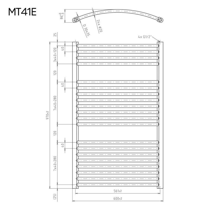 Mereo Vykurovací rebrík oblý 600×970 mm, biely, elektrický MT41E