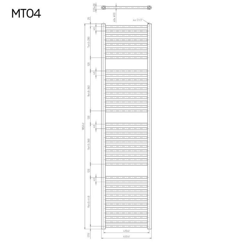 Mereo Vykurovací rebrík, rovný, 450×1850 mm, biely MT04