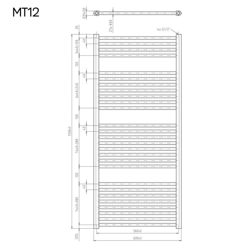 Mereo Vykurovací rebrík, rovný, 600×1330 mm, biely MT12