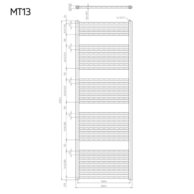 Kúpeľňové radiátory sú určené predovšetkým na vykurovanie kúpeľní, WC, kuchýň, obytných miestností a vstupných priestorov. Svojou modernou a praktickou konštrukciou sa výborne hodia na sušenie a predhrievanie uterákov, utierok a iných textílií. Na tento účel môžu byť vybavené elektrickou vykurovacou tyčou pre elektrické a kombinované vykurovanie. Radiátory sú použiteľné v teplovodných vykurovacích sústavách s núteným i samočinným obehom. Radiátory sú vyrobené z uzavretých oceľových profilov s rôznym tvarom prierezu. Vďaka použitej technológii je garantovaná dlhodobá korózna a mechanická odolnosť. Kvalitná povrchová úprava spĺňa všetky požiadavky na hygienickú nezávadnosť a je vykonaná s maximálnym ohľadom na životné prostredie. Štandardným farebným odtieňom je farba biela. Maximálny pracovný pretlak: 1,0 MPa. Maximálna pracovná teplota: 110 ° C. Ean: 8596462532132