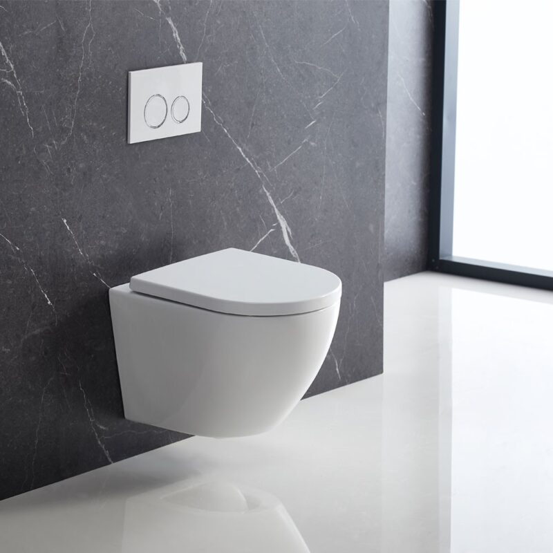 Rimless je inovatívny spôsob oplachu WC klozetu. Premyslený spôsob vedenia vody zaisťuje účinný oplach toalety a taktiež ľahké čistenie WC misy.Vďaka novému tvaru misy odpadá zložité čistenie splachovacieho žliabku pod okrajom misy, ktorý je používaný na klasických WC, a kde by sa mohli hromadiť baktérie, špina a usadeniny.Samozatváracie WC sedadlo má nerezové, nastaviteľné úchyty, ktoré je možné prispôsobiť rozmerom misy.Pomocou hydraulického systému veko aj sedadlo pomaly dopadajú na misu. Tento systém dodáva pocit komfortu a zabraňuje poškodeniu misy aj sedátka. Nerezové pánty uľahčujú údržbu a predlžujú životnosť.- antibakteriálna povrchová úprava- soft close: samozatvárací systém (pozvoľné sklápanie sedátka i veka)- easy lock: systém umožňujúci jednoduchým stlačením odňať WC sedátko od misy (zvyšuje úroveň hygieny toalety)