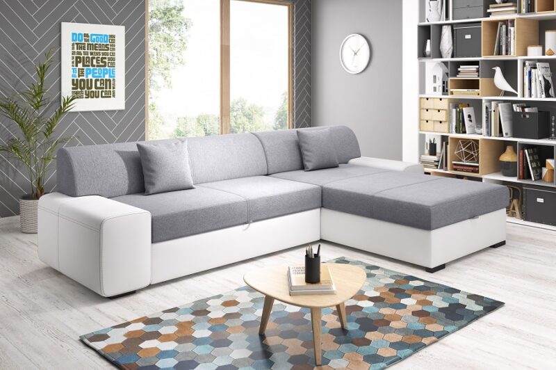 Moderná rohová sedačka MERRENGE Vám poskytne pohodlné sedenie a oddych. Sedačka disponuje úložným priestorom a funkciou rozkladu. Po rozložení vznikne plocha na príležitostné spanie o rozmere 135 x 220 cm. Sedačka je potiahnutá látkou Primo 92 v kombinácii s ekokožou Madryt 120. Je tvorená bonellovou pružinou a PUR penou s hustotou T-25. Nožičky sú vyrobené z dreva.Rozmery (š,v,h): 290 x 71 x 175 cm. Výška sedu 42 cm. Hĺbka sedu 62 cm.Rohová sedačka je v pravom prevedení rohu.Dodávame v demontovanom stave.
