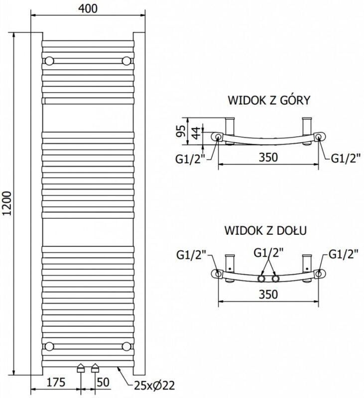 MEXEN – Ares vykurovací rebrík/radiátor 1200 x 400 mm, 442 W, biela W102-1200-400-00-20