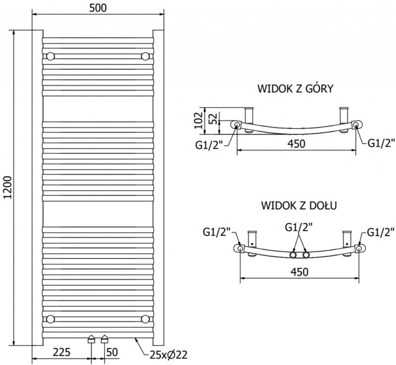 MEXEN – Ares vykurovací rebrík/radiátor 1200×500 mm, 420 W, chróm W102-1200-500-00-01