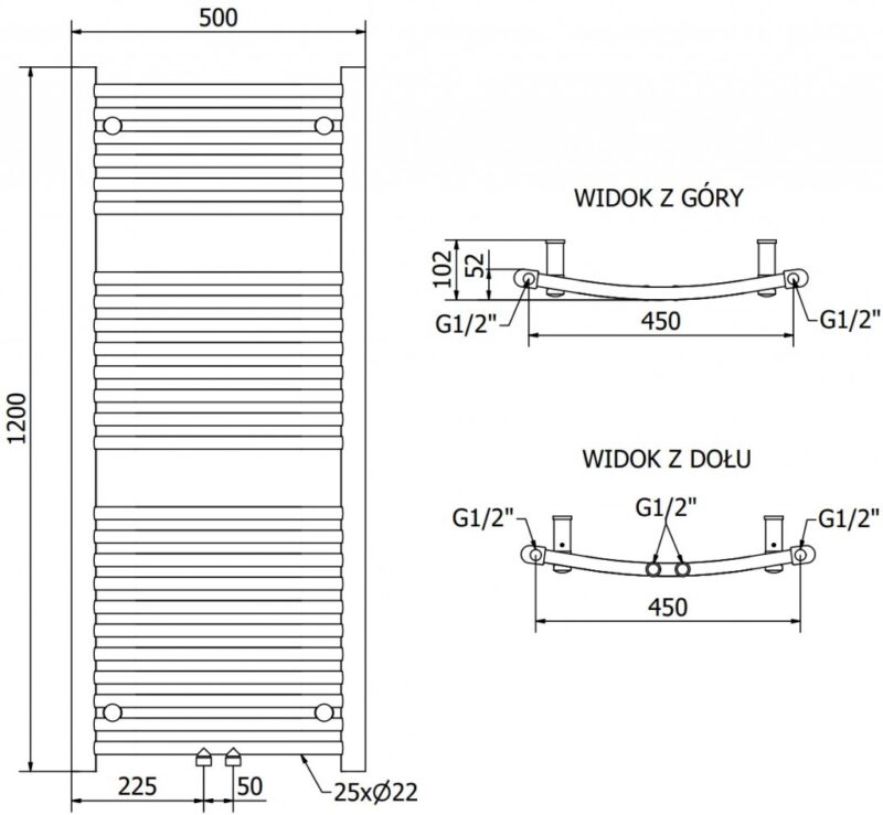 MEXEN – Ares vykurovací rebrík/radiátor 1200×500 mm, 531 W, čierna W102-1200-500-00-70