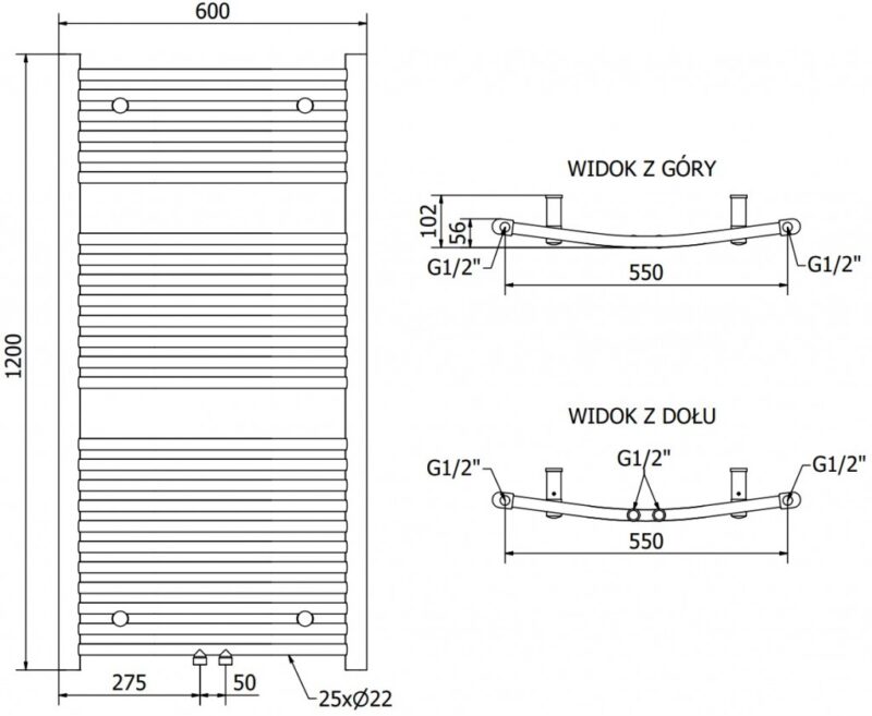 MEXEN – Ares vykurovací rebrík/radiátor 1200×600 mm, 620 W, čierna W102-1200-600-00-70