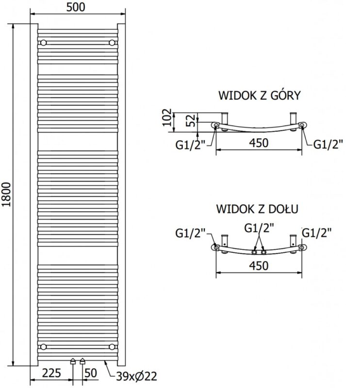 MEXEN – Ares vykurovací rebrík/radiátor 1800 x 500 mm, 820 W, antracit W102-1800-500-00-66