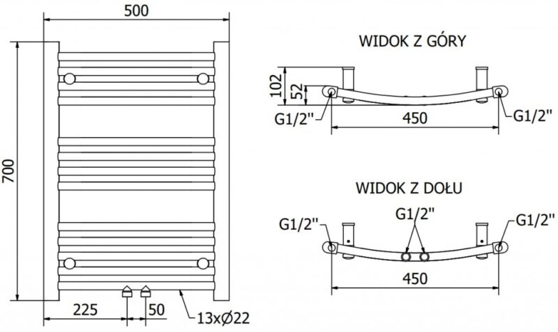 MEXEN – Ares vykurovací rebrík/radiátor 700×500 mm, 286 W, čierna W102-0700-500-00-70