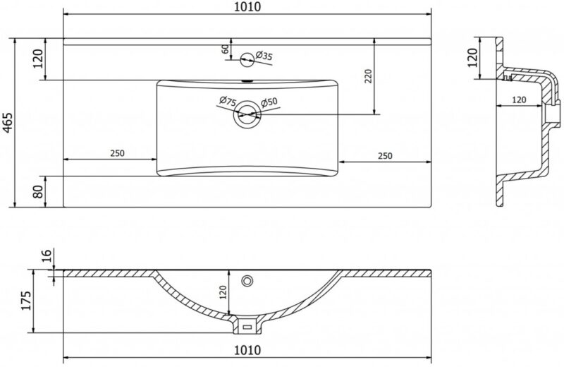 Špecifikácia produktu: Rozmer: 101×46,5×17,5 cm Hĺbka: 12 cm Typ: Zapustené do pracovnej dosky biela farba Materiál: Sanitárna keramika Prepadový otvor: Áno Otvor pre batériu: Áno(GT) Ean: 5907709156432