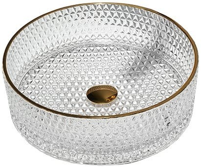 MEXEN – Aura sklenené umývadlo na dosku 39×39, transparent/zlatá 24013905