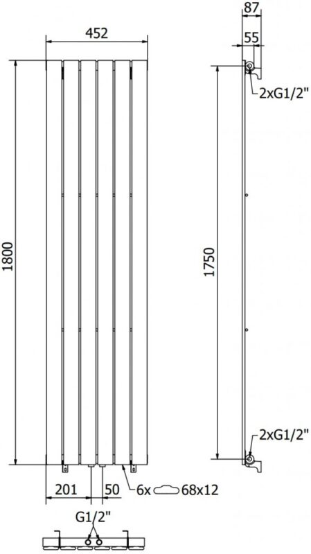 MEXEN – Boston vykurovací rebrík/radiátor 1800 x 452 mm, 888 W, antracit W213-1800-452-00-66