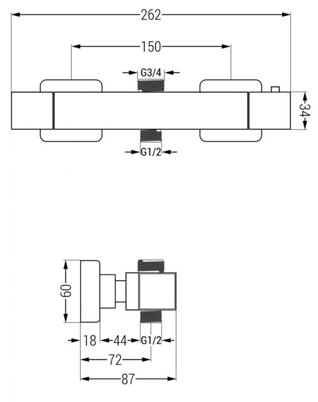 Pripojenie sprchy: G 3/4 „(hore) a G 1/2“ (dole)
