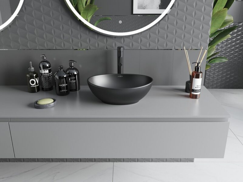 Domovská stránka » Katalóg » MEXEN – Elza umývadlo na dosku 40 x 33 cm čiernej mat 21014085