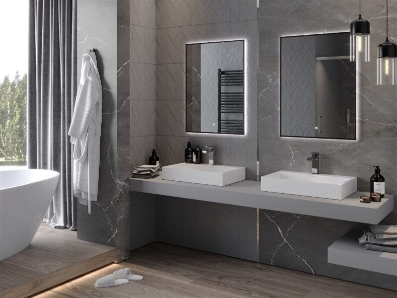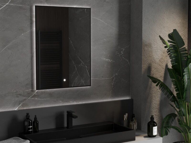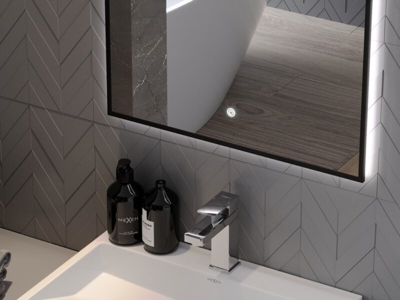MEXEN – Erma zrkadlo s osvetlením 60 x 80, LED 6000K, čierny rám 9814-060-080-611-70