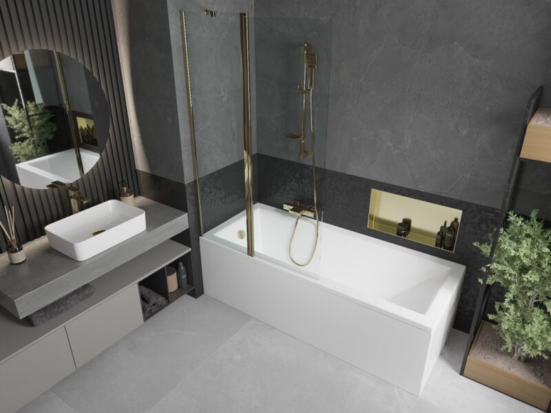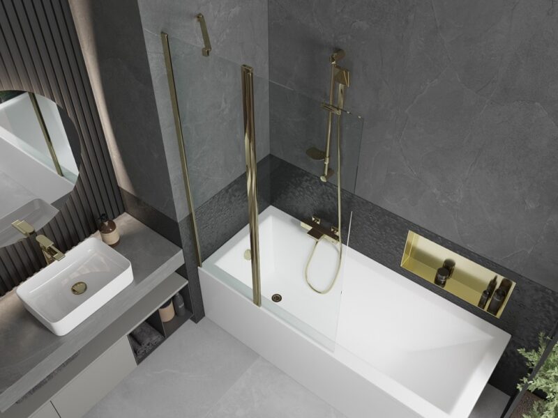 MEXEN – Flip vaňová zástena 1-krídlo 100×150, transparent, zlato 894-100-101-50-00