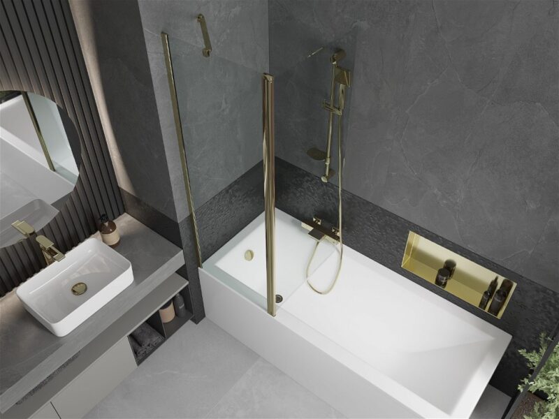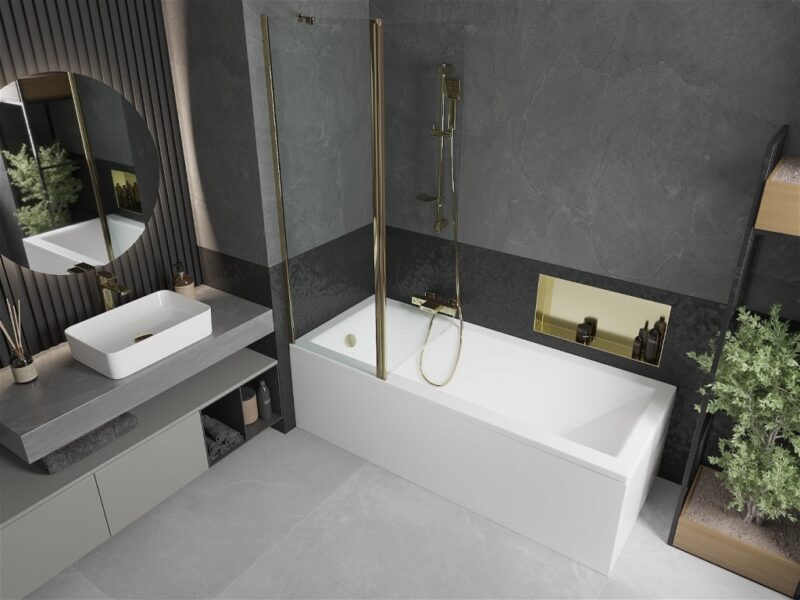 MEXEN – Flip vaňová zástena 1-krídlo 120×150, transparent, zlato 894-120-101-50-00