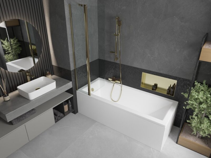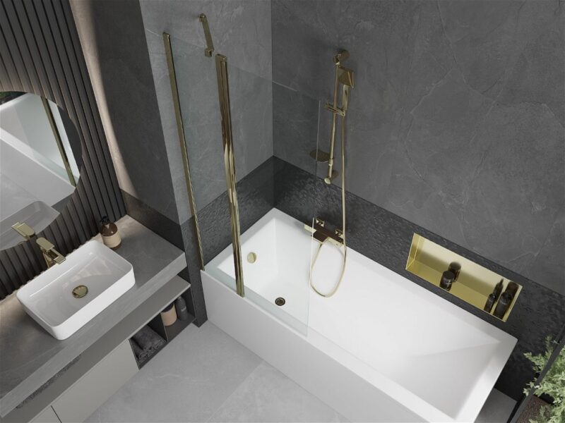 MEXEN – Flip vaňová zástena 1-krídlo 80×150, transparent, zlato 894-080-101-50-00