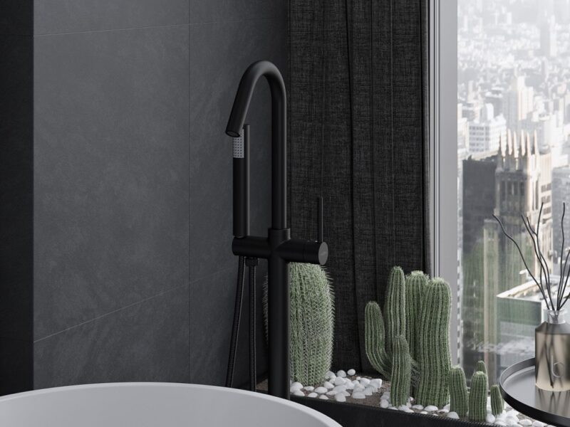 Špecifikácia produktu: Typ: voľne stojaca vaňa čierna farba Hlava: Keramika Materiál: Telo z mosadze Perlátor: Áno Inštalácia: na podlahu mosadzná sprchová hadica: 150 cm Rozsah výtoku: 16 cm Výška batérie: 115 cm Výška odtoku vody: 103 cm(GT) Ean: 5907709126466