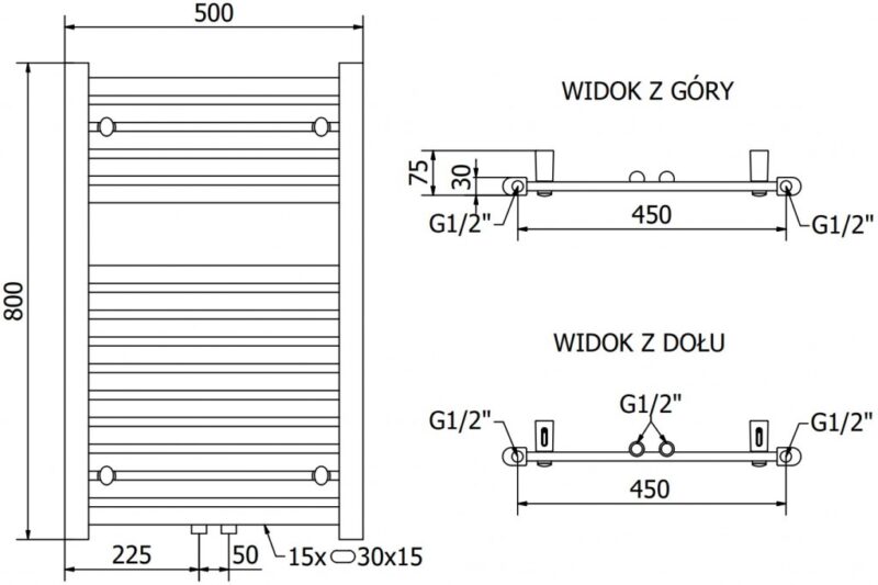 MEXEN – Hades vykurovací rebrík/radiátor 800 x 500 mm, 301 W, zlatý W104-0800-500-00-50