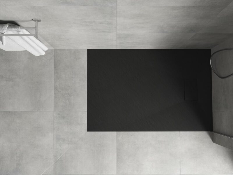 Technické dáta: Rozmer: 100 x 80 x 2,6 cm Čierna farba Typ: Obdĺžnikový, Ultra plochý Inštalácia: Do podlahy alebo na podlahu Materiál: SMC – plast Kamenná štruktúra Možnosť rezania sprchovej vaničky Odolný výrobok, ktorý sa nedeformuje Maximálna stabilita vďaka dobrej odolnosti proti nárazu Kompletný so sifónom vyčisteným zhora Priemer odtoku: 90 mm Povrchová úprava mriežky: čierna(GT) Ean: 5907709144804