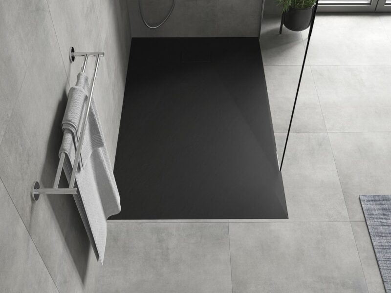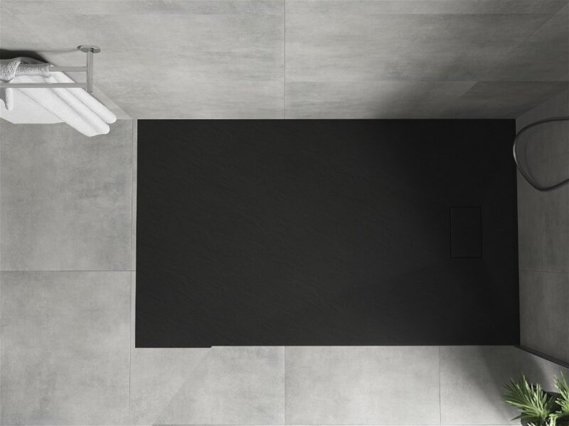 Technické dáta: Rozmer: 150 x 90 x 2,6 cm Čierna farba Typ: Obdĺžnikový, Ultra plochý Inštalácia: Do podlahy alebo na podlahu Materiál: SMC – plast Kamenná štruktúra Možnosť rezania sprchovej vaničky Odolný produkt, ktorý sa nedeformuje Maximálna stabilita vďaka dobrej odolnosti proti nárazu Kompletný so sifónom vyčisteným zhora Priemer odtoku: 90 mm Povrchová úprava mriežky: čierna(GT) Ean: 5907709144965