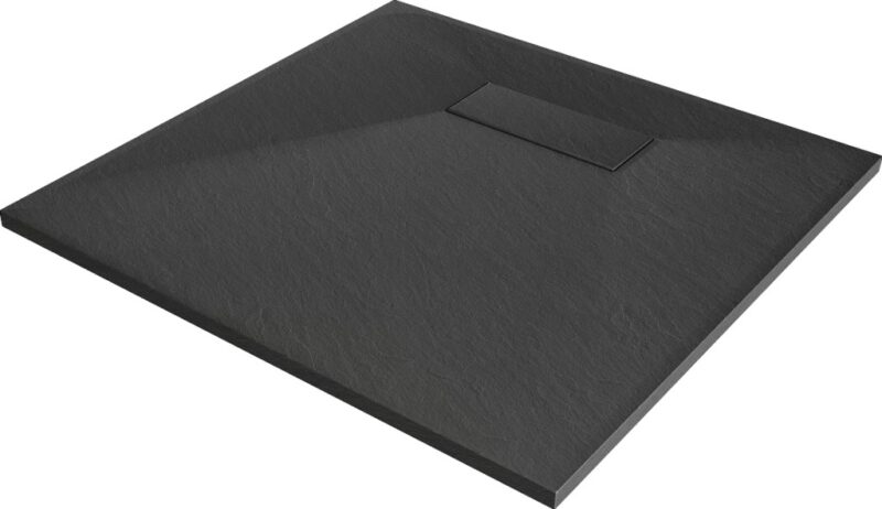 Technické dáta: Rozmery: 90 x 90 x 2,6 cm Čierna farba Typ: štvorcový, ultraplochý Inštalácia: Do podlahy alebo na podlahu Materiál: SMC – plast Kamenná štruktúra Možnosť rezania sprchovej vaničky Odolný produkt, ktorý sa nedeformuje Maximálna stabilita vďaka dobrej odolnosti proti nárazu Kompletný so sifónom vyčisteným zhora Priemer odtoku: 90 mm Povrchová úprava mriežky: Čierna(GT) Ean: 5907709145009