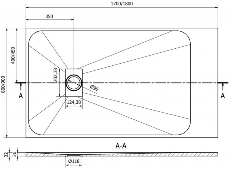 Technické dáta: Rozmer: 180x80x2, 6 cm Šedá farba Typ: Obdĺžnikový, Ultra plochý Inštalácia: Do podlahy alebo na podlahu Materiál: SMC – plast Kamenná štruktúra Možnosť rezania sprchovej vaničky Odolný produkt, ktorý sa nedeformuje Maximálna stabilita vďaka dobrej odolnosti proti nárazu Sada obsahuje sifón, ktorý sa čistí zhora Priemer odtoku: 90 mm Povrchová úprava mriežky: šedá(GT) Ean: 5907709144576