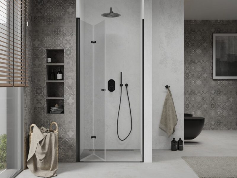 MEXEN – LIMA skladacie dvere 100×190 cm 6mm, čierne, transparent so stenovým profilom 856-100-000-70-00