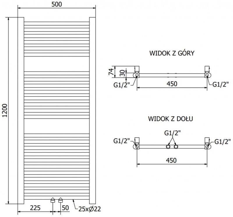 MEXEN – Mars vykurovací rebrík/radiátor 1200 x 500 mm, 528 W, čierna W110-1200-500-00-70