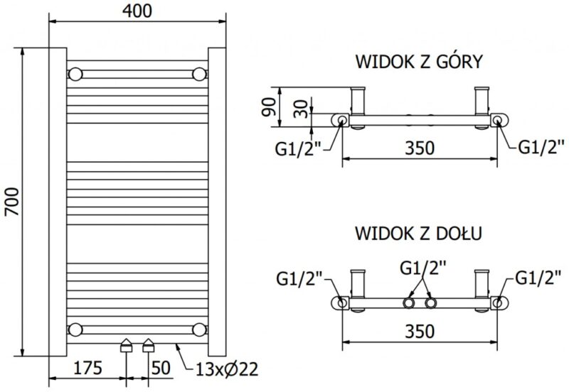 – 4xG ½″ zhora a zdola na pravej alebo ľavej strane