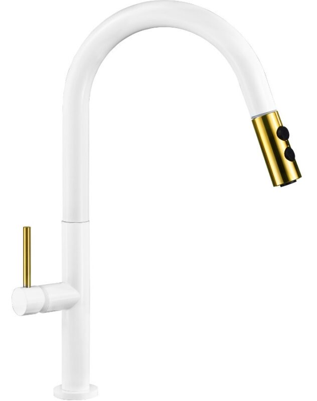 Domovská stránka » Katalóg » MEXEN MEXEN – Ava drezová batéria, bielo / zlatá 672800-25