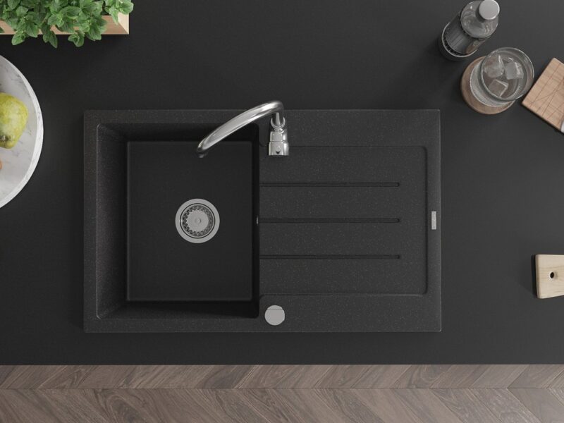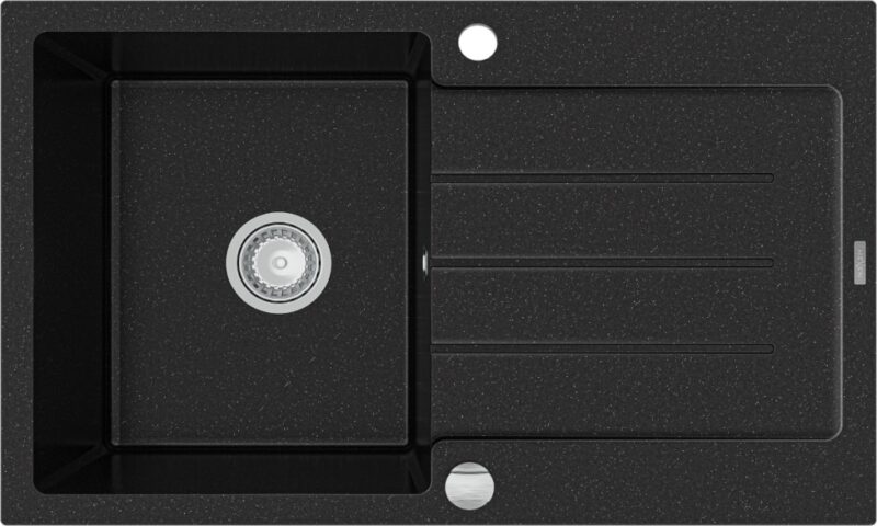 MEXEN MEXEN – Bruno granitový drez 1 s odkvapkávačom 795×495 mm, čierna / strieborná metalíza 6513791010-73