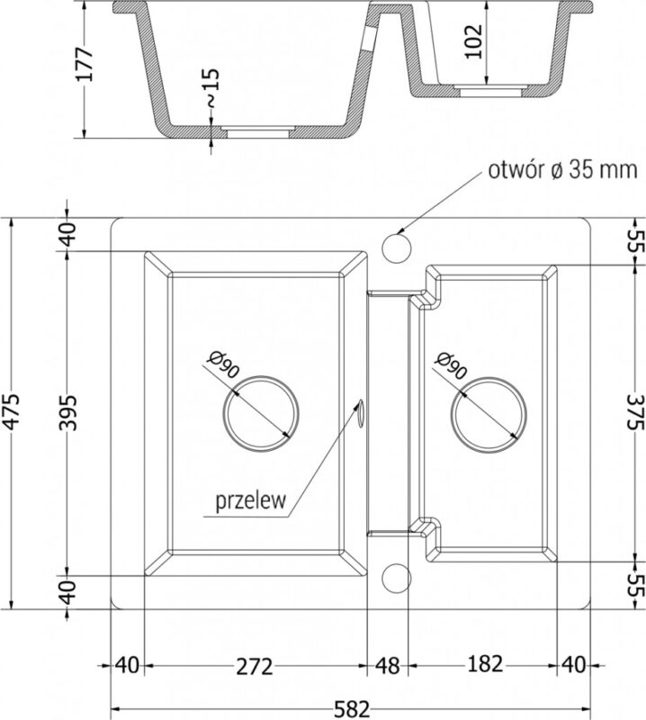 Hĺbka komory: 162 mm (väčšia), 102 mm (menšia)