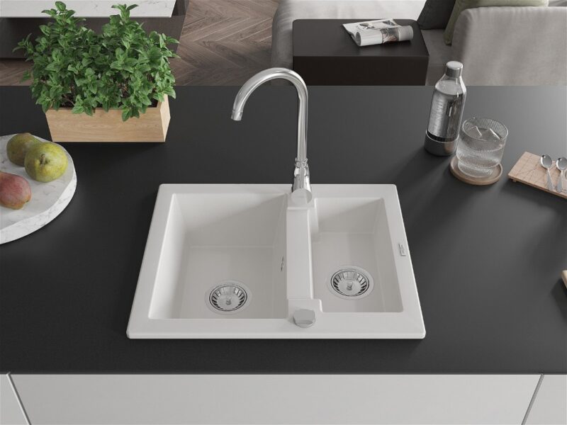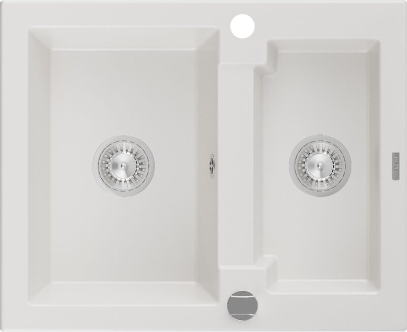 MEXEN MEXEN – Carlos granitový drez 1.5 582×475 mm, biela, sifón chróm 6518581500-20