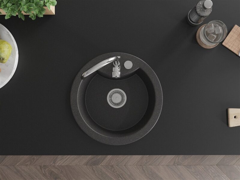 MEXEN MEXEN – Diego granitový drez 1-miska 488×480 mm, čierna 6512481000-77