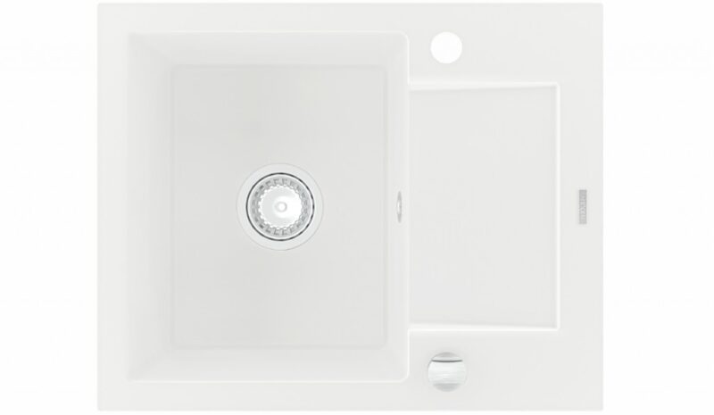 MEXEN MEXEN – Enzo granitový drez 1-misa drez s vypúšťaním krátky odkvapkávač 576×465 mm, biela 6506571005-20