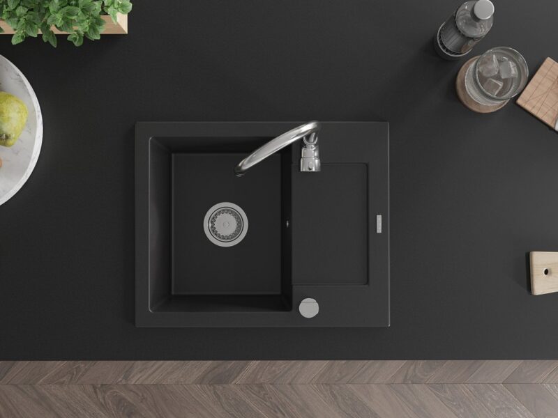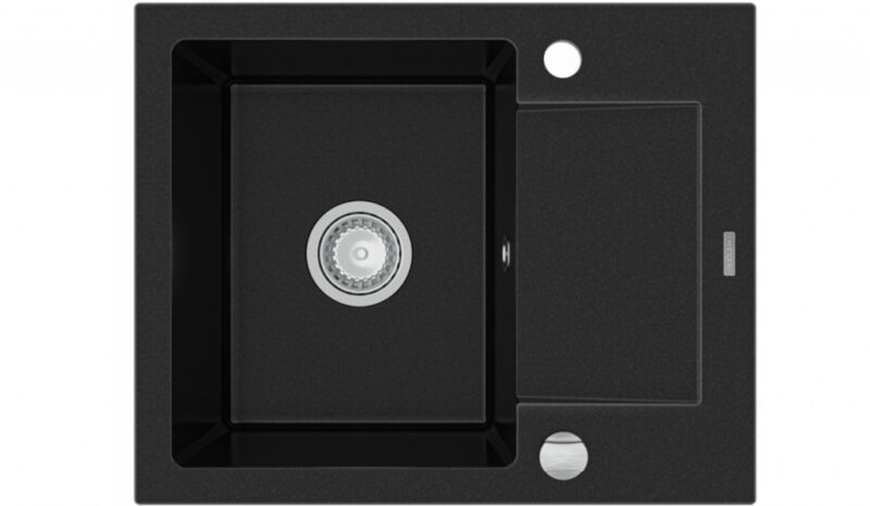 MEXEN MEXEN – Enzo granitový drez 1-misa drez s vypúšťaním krátky odkvapkávač 576×465 mm, čierna 6506571005-77