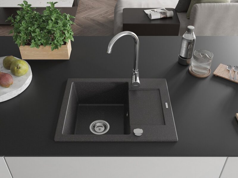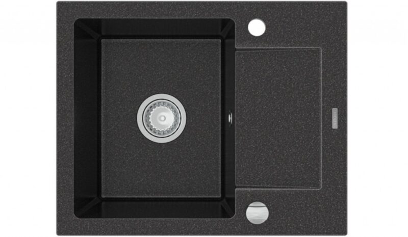 MEXEN MEXEN – Enzo granitový drez 1-misa drez s vypúšťaním krátky odkvapkávač 576×465 mm, čierna škvrnité 6506571005-76