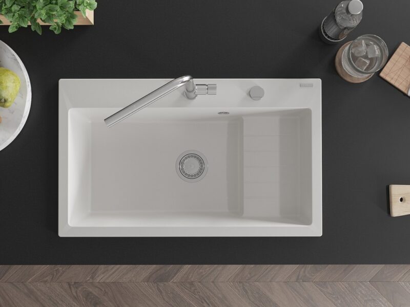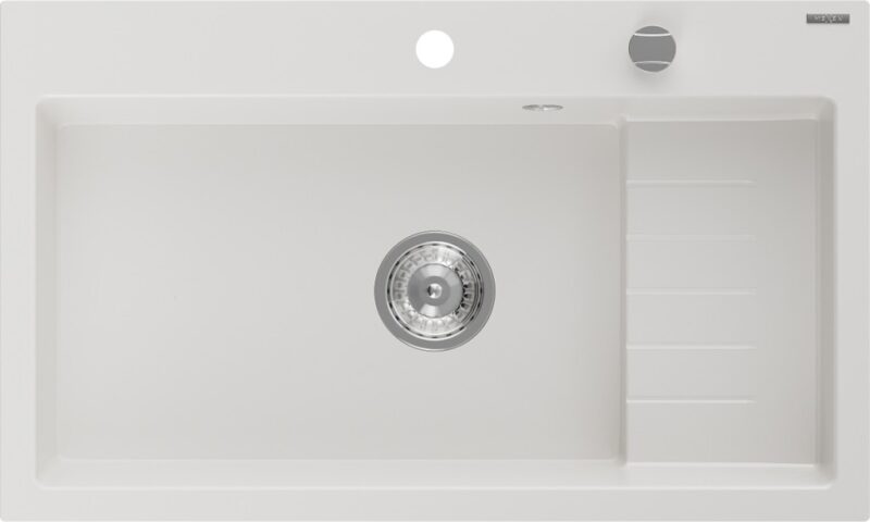 MEXEN MEXEN – Omar granitový drez 1 s odkvapkávačom 800 x 480 mm, biela, sifón chróm 6520801005-20