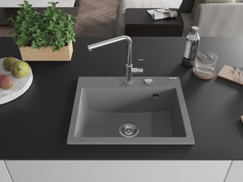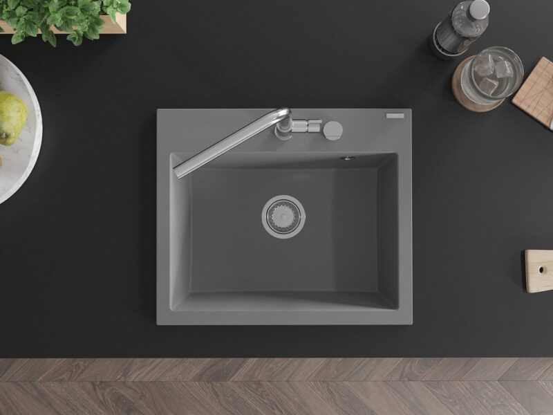 MEXEN MEXEN – Oscar granitový drez 580 x 490 mm, sivá, sifón chróm 6519581000-71
